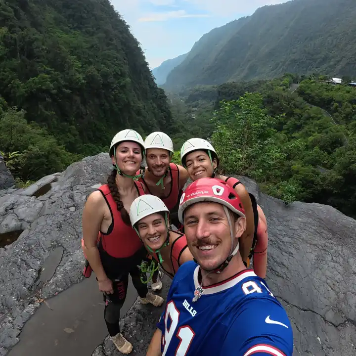 Avec des passages modulables, ce canyon permet de pratiquer le canyoning en toute confiance, quel que soit son niveau. Accessible dès 8 ans, il constitue une activité idéale pour une sortie canyoning en famille ou entre amis dans le sud de l’île.
